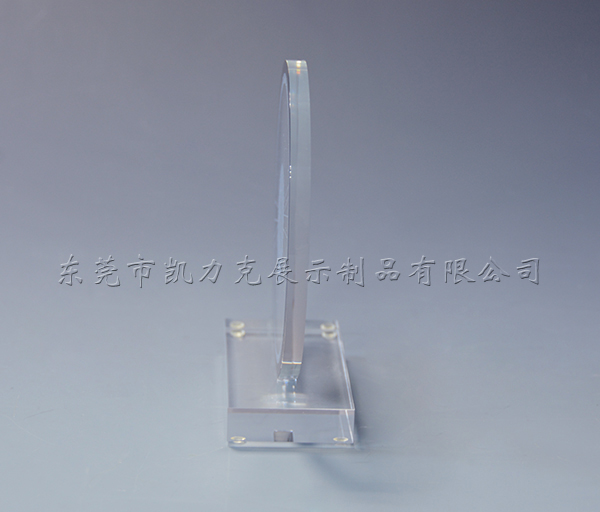 這款亞克力獎杯有采用全透明亞克力材料,一塊3MM的圓板加絲印圖案加一塊10MM的板粘接而成,底座四角粘接個四個膠墊,可以防止打滑和亞克力刮花。
