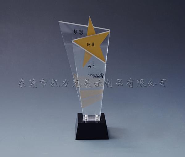 這款亞克力獎杯是由三片透明亞克力板板和一個黑色亞克力底座用磁鐵組合而成。采用工藝:雕刻、拋光、絲印等。適用場合:賽事評選、企業(yè)表彰、文化展示、工藝收藏等。