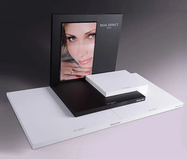 這款亞克力化妝品展示架采用黑白色調為主,表面光滑平整,通過切割和粘接等加工方式制作成各種形狀和尺寸,能夠滿足不同展示需求。同時,亞克力還可以與其他材料結合使用,創(chuàng)造出更多樣化的設計效果。相比于其他材料,亞克力展示架通常比較輕便,方便搬移和重新布置。這對于商店或展覽場所來說非常重要,可以根據(jù)需要進行靈活的陳列安排。
