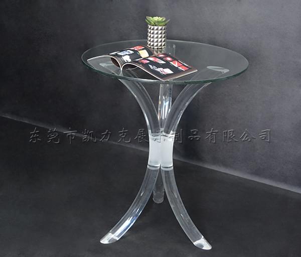 這款有機玻璃桌子是采用三條透明的棒熱彎成弧形作為支架,然后再加一塊圓形的玻璃桌面組合而成,亞克力材料質(zhì)輕、透明度高、易加工,玻璃材質(zhì)耐刮花,這兩個材料結(jié)合,讓這個有機玻璃桌子,造型簡約時尚,耐用。