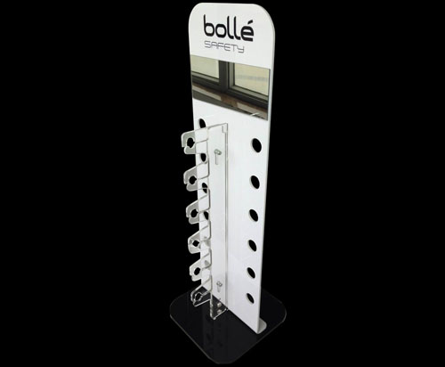 這款眼鏡架是客戶專業(yè)定制的一款帶鏡片的展架,能實時映照戴上blle眼鏡時的妝容.