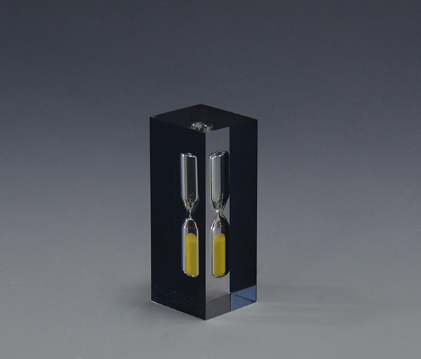這是一款水晶膠沙漏工藝品,計時3分鐘,五面為透明色,正面為客人定制的黑色絲印圖案,這款沙漏可以按照個人要求定制規(guī)格、計時時間、沙子、絲印圖案等。