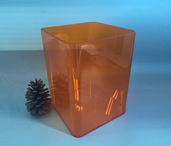這款有機(jī)玻璃罩子是采用4mm透橙色亞克力原材料,經(jīng)過切割、拋光、熱彎、粘接等工藝制作而成。