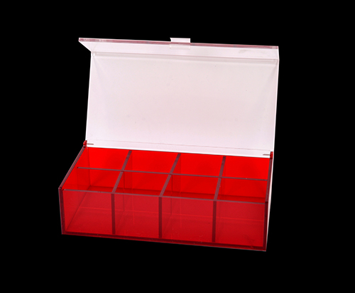 這是一款亞克力盒子,紅色的材料顏色看起來(lái)特別紅火,特別熱情。盒子里面有隔板,可以把產(chǎn)品一個(gè)個(gè)隔開(kāi),上面是一個(gè)蓋子。把產(chǎn)品放在里面,蓋上盒子對(duì)產(chǎn)品起到一個(gè)很好的保護(hù)作用。