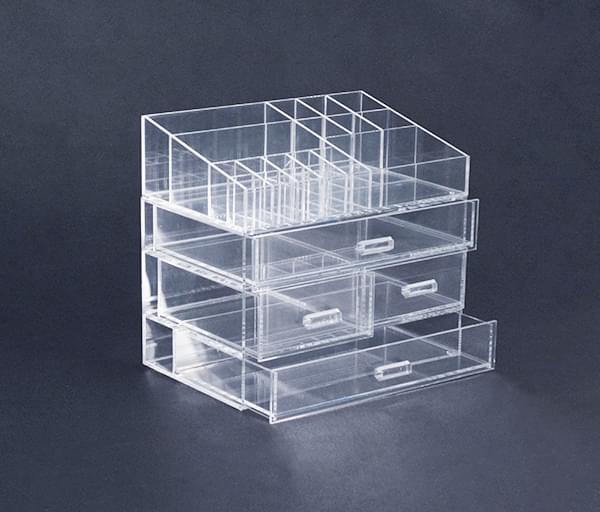 這款亞克力收納盒,采用透明亞克力材質(zhì),整個盒子晶瑩剔透,拉手處凸起設(shè)計方便抽拉,放在桌面上美觀大方。還可根據(jù)個人要求定制圖案。