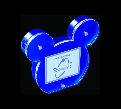 亞克力米老鼠相框由切割、拋光、磁鐵等制作工藝,適用性廣,形狀可愛、特別,韌性好,不易破損,防照片皺折老化延長相片壽命。